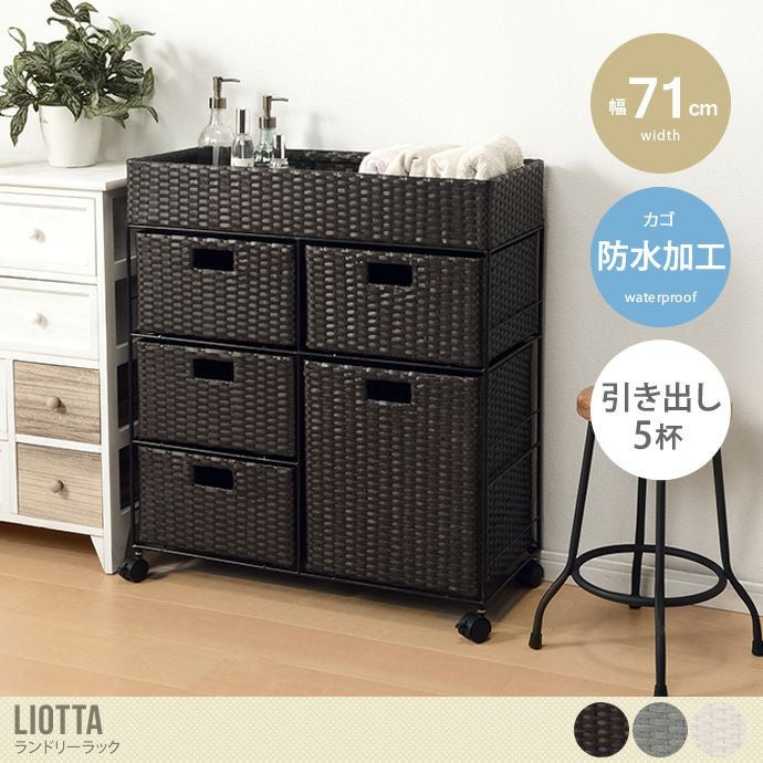 『Liotta(リオッタ)』シリーズから、引出付きのランドリーラックが登場しました。デザインはお洒落なラタン調の編み込みで通気性抜群。濡れてもお手入れ簡単な防水素材の為、水回りでも安心して使っていただけます。脚底には、キャスターがついているので移動もラクラク。タオルや洋服、洗濯洗剤まで、一緒にすっきりと洗面所スペースに収納していただけます。