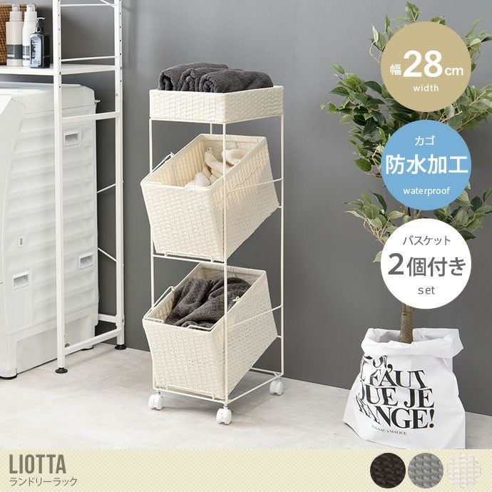 『Liotta(リオッタ)』シリーズから色柄物や汚れた洗濯物を分けて溜められるランドリーラックが登場しました。デザインと使いやすさを追求したラックで、バスケットが斜めになっている為、衣類を出し入れしやすい構造です。また、バスケットには取っ手が付いているので簡単に取り外しすることができ、洗濯物の持ち運びにも便利。デザインはお洒落なラタン調の編み込みで通気性がよく、防水効果もあるので万が一濡れても拭くだけでお手入れ簡単です。