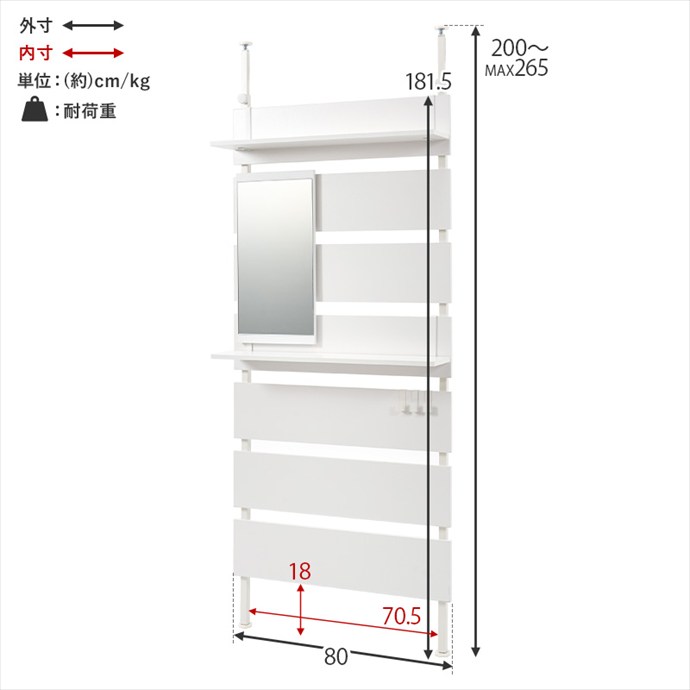 サイズ幅80cm×奥行21.5cm×高さ200~265cm