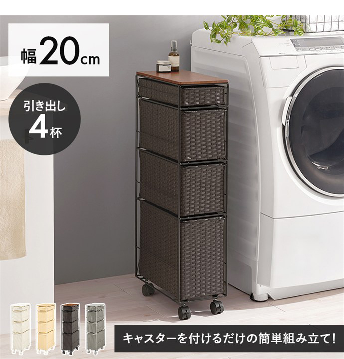 幅20 ランドリーチェスト 隙間収納 ラック ワゴン バスケット 洗面所 脱衣所 おしゃれ おすすめ 安い すきま収納 コンパクト スリム 引き出し 4杯 通気性 キャスター付き キッチン 一人暮らし ワンルーム タオル 衣類 ナチュラル