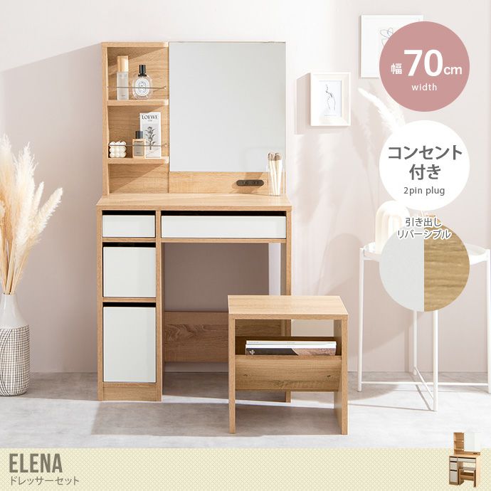 他の画像を見る 【送料無料】幅70cm ドレッサー ドレッサーセット 化粧台 椅子付き チェア コンパクト 収納 スツール ドレッサーテーブル メイク 化粧 バイカラー 韓国 インテリア 北欧 可愛い コンセント付き ホワイト 鏡 大人女子 メイク台 ナチュラル/ホワイト 販売価格 ¥ 19,999 税込 送料込 カートに入れる お気に入りに登録する