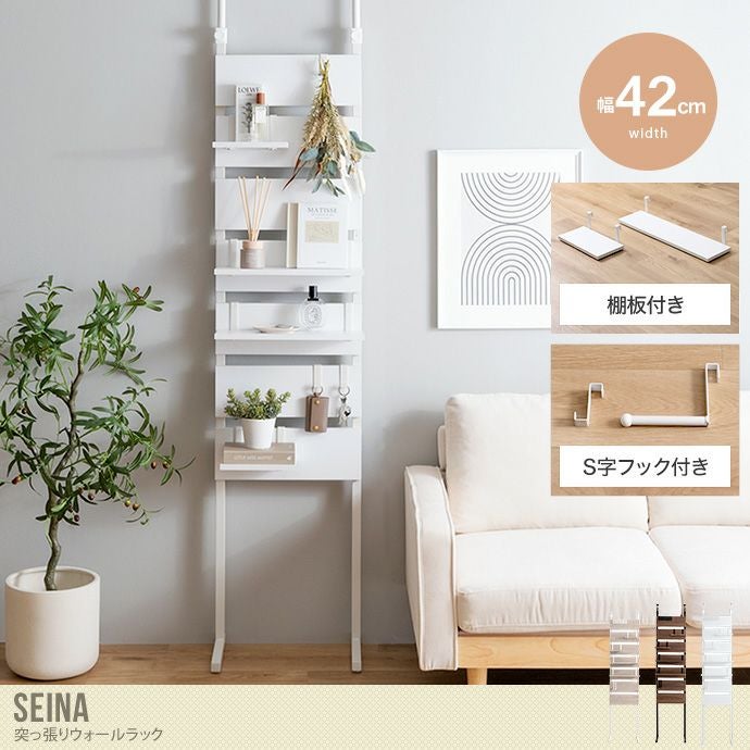 他の画像を見る 【送料無料】Seina セイナ 幅42 突っ張り棚 壁面収納 ウォールラック つっぱり棚 シェルフ スリム 木目調 韓国 インテリア 北欧 モダン 一人暮らし コンパクト 賃貸 省スペース 棚付き S字フック ディスプレイ リビング オーク 販売価格 ¥ 8,999 税込 在庫切れ 送料込 カートに入れる お気に入りに登録する