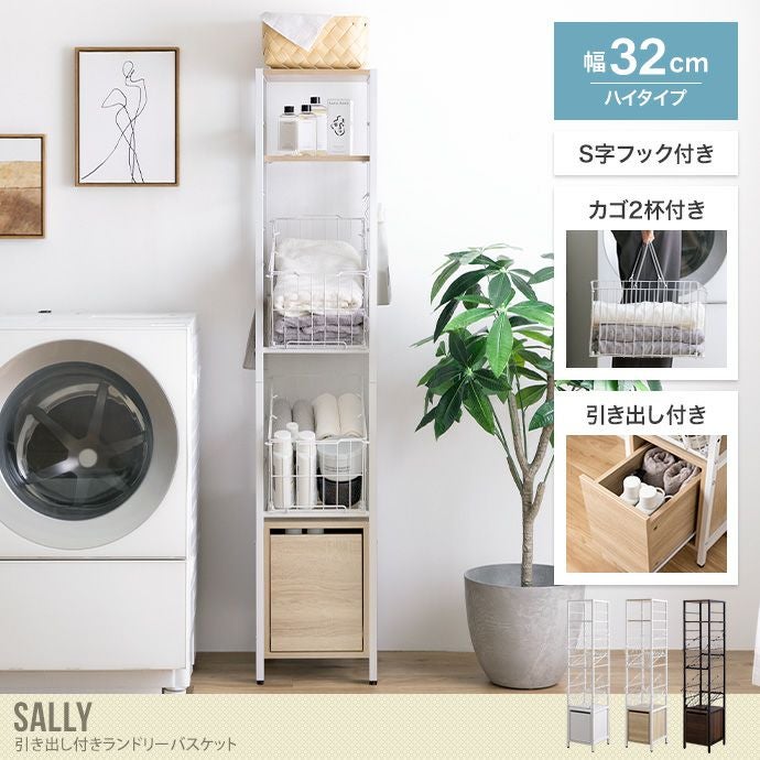 他の画像を見る 【送料無料】Sally サリ 幅32 ランドリーバスケット ラック 収納 洗濯機 横 周り 隙間収納 脱衣所 洗面所 洗面台 シェルフ 引き出し カゴ 2杯 サイド ボックス S字フック 棚 キャスター スリム コンパクト サニタリー マグネット 洗濯かご ホワイト 販売価格 ¥ 13,499 税込 在庫切れ 送料込 カートに入れる お気に入りに登録する