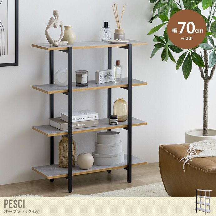 他の画像を見る 【送料無料】Pesci ペッシ 幅70 オープンラック シェルフ 棚 ディスプレイ 本棚 アイアンフレーム 4段 収納 キャビネット 北欧 インテリア 大理石柄 木目 高さ90cm 薄型 コンパクト 一人暮らし 小さい スリム 木製 間仕切り おもちゃ 絵本 ストーン 販売価格 ¥ 7,999 税込 在庫切れ 送料込 カートに入れる お気に入りに登録する