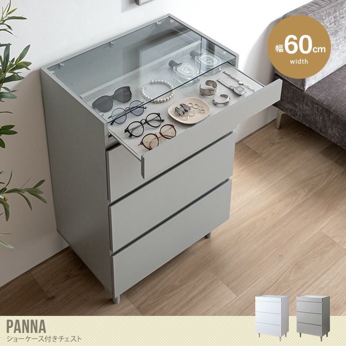 他の画像を見る 【送料無料】Panna パンナ 幅60 チェスト ショーケース付き キャビネット タンス アクセサリー収納 ディスプレイ おしゃれ おすすめ 安い ディスプレイ 引き出し コンパクト 大容量 省スペース 3段 かわいい 一人暮らし ワンルーム ホワイト 販売価格 ¥ 18,999 税込 送料込 カートに入れる お気に入りに登録する