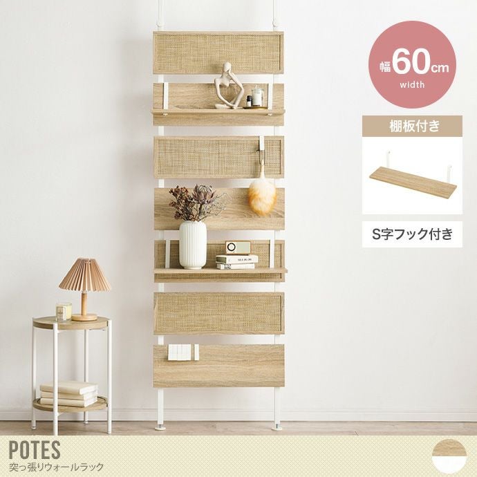 他の画像を見る 【送料無料】幅60 収納 ラック 突っ張り棚 パーテーション 間仕切り ウォールシェルフ ウォールラック 壁面収納 ラタン 伸縮 木目 韓国インテリア 賃貸 一人暮らし ワンルーム S字フック 棚板 スリム 洗面所 リビング ダイニング ナチュラル/ホワイト 販売価格 ¥ 16,980 税込 送料込 カートに入れる お気に入りに登録する
