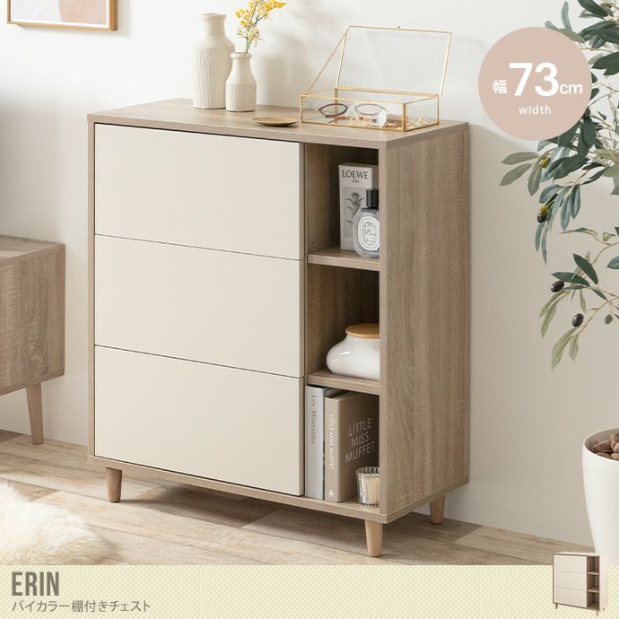 他の画像を見る 【送料無料】Erin エリン 幅73cm チェスト タンス ローチェスト 収納家具 洋服 サイドチェスト クローゼット 棚 オープンラック スリム ミニ コンパクト 木製 薄型 多段 引き出し 衣装 バイカラー インテリア リビング ベビー キッズ ナチュラル/ホワイト 販売価格 ¥ 12,599 税込 送料込 カートに入れる お気に入りに登録する