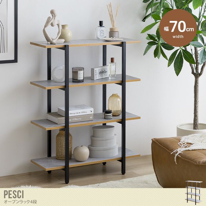 他の画像を見る 【送料無料】Pesci ペッシ 幅70 オープンラック シェルフ 棚 ディスプレイ 本棚 アイアンフレーム 4段 収納 キャビネット 北欧 インテリア 大理石柄 木目 高さ90cm 薄型 コンパクト 一人暮らし 小さい スリム 木製 間仕切り おもちゃ 絵本 ストーン 販売価格 ¥ 7,199 税込 送料込 カートに入れる お気に入りに登録する