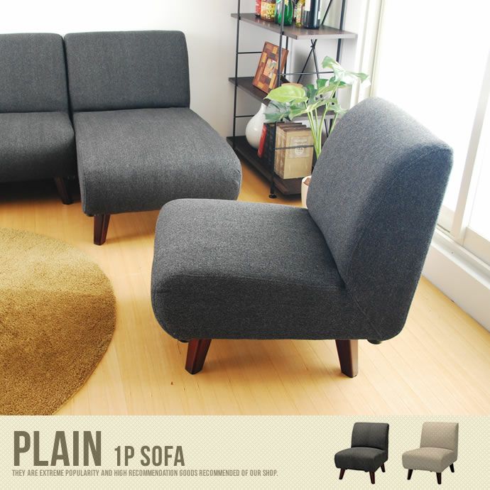 【送料無料】アームレスソファ 1人掛け 幅53cm シンプル ファブリック グレー