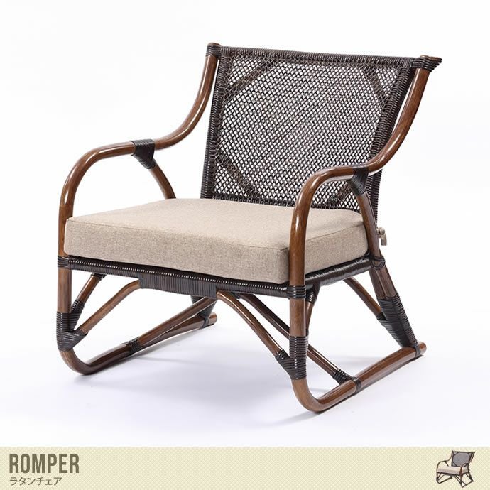 ラタン素材のフレームに、厚みのあるクッションが付いたパーソナルチェア『Romper・ロンペール』。職人によって丁寧に編まれた美しい編み目が魅力で、シックでシンプルなデザインは、和風・洋風どちらのインテリアにも馴染んでくれます。脚部は丸みがあり、畳のお部屋でもお使いいただけます。コンパクトサイズで軽量なので、気軽に移動や配置換えができます。天気の良い日には、お庭やバルコニーで使うのもGOOD!
