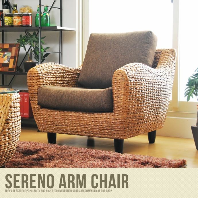 ウォーターヒヤシンス素材が南国リゾートを演出するアジアンテイストの「SERENO 一人掛けアームチェア」。