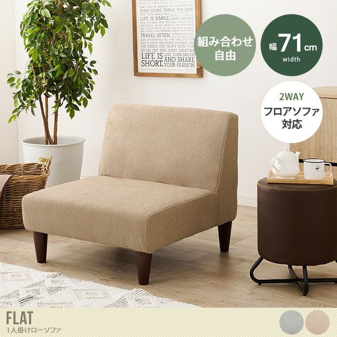【送料無料】幅71 ソファ ロー 1人掛け 1P フラット ファブリック 2WAY 連結可 脚 取り外し可 工具不要 ロースタイル フロア グレー