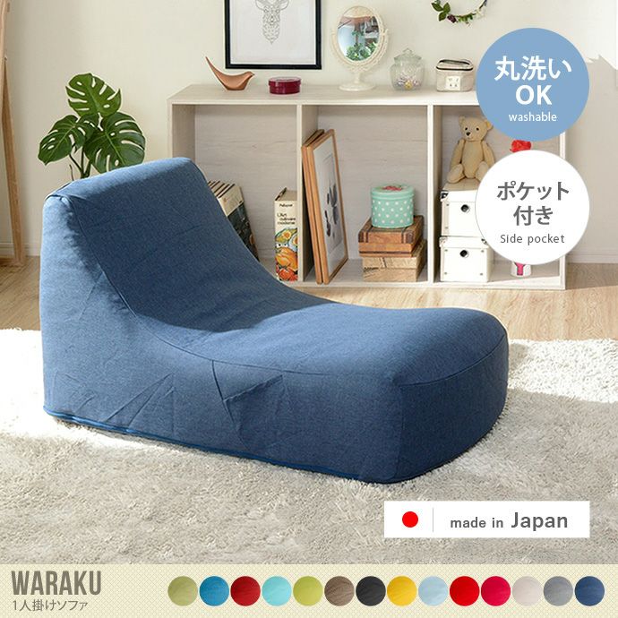 なだらかなカーブと程よい弾力が身体をやさしく包み込む『Waraku(ワラク)』一人掛けソファ。程よい硬さで身体を支え、長時間座っていても疲れにくいです。また、カバーにはさらっとした手触りのファブリックを使用し、年中快適な座り心地。さらに側面にはスマートフォンやリモコンを入れるのに便利なポケットつき。カバーは外して洗濯できるので衛生的です。品質にこだわった安心の日本製で、へたりにくく長くお使いいただけます。