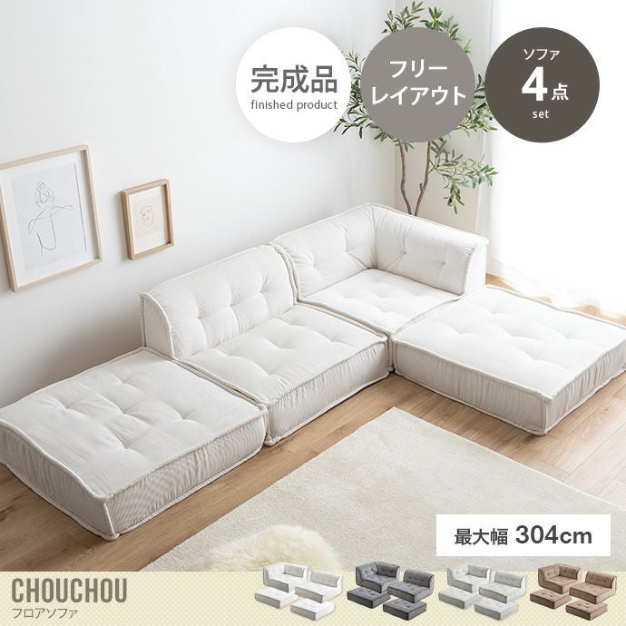 【送料無料】Chouchou シュシュ 幅304 ソファ 3人掛け フロア ロー カウチ コーデュロイ コンパクト 低め 2P 3P 2人用 2人掛け セット 組み合わせ 完成品 左右対応 リビング ダイニング ごろ寝 セパレート ユニット チェア 椅子 いす 2人暮らし アイボリー