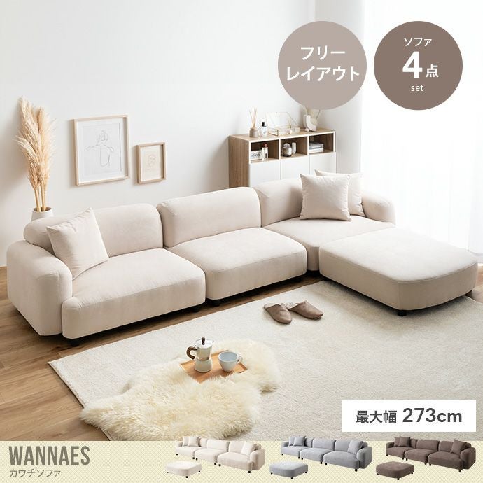 【送料無料】Wannaes ワンネス 幅273 ソファ カウチ 3人掛け フロア ロー ファブリック 低め 2P 3P 二人 三人 L字 セット 肘置き ひじ掛け クッション付き ゆったり ワイド 上質 高級感 組み合わせ リビング ダイニング ファミリー 脚付き アイボリー