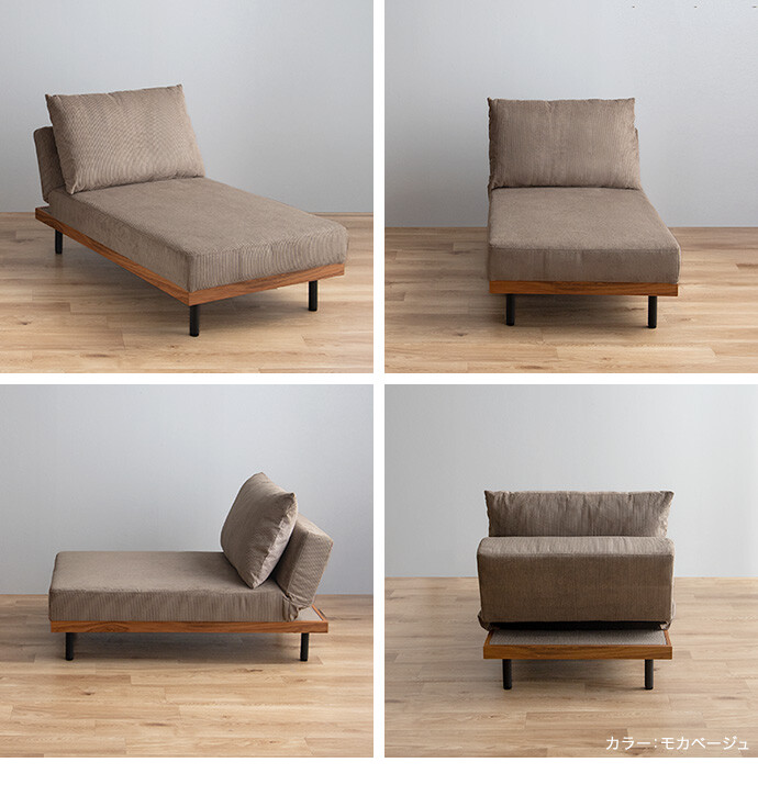 【送料無料】Ridley リドリー 幅70 ソファーベッド カウチソファー ソファ 一人掛け ソファベッド リクライニング ベッド おしゃれ おすすめ 安い ローソファー コーデュロイ フロアソファ 脚付き アームレス ひじ掛けなし コンパクト モカベージュ