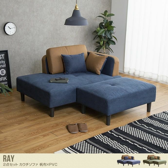 シーンに合わせて自由に組み換えられるカウチソファ。男性が1人でも寝てもゆったりと寝られるベッドで1台で2役使えます。脚部を外すとロータイプソファとしもご使用頂けお部屋を広く見せる事ができます。帆布×PVCレザーの2トーンカラーがお部屋のアクセントになりとても目を惹きます。
