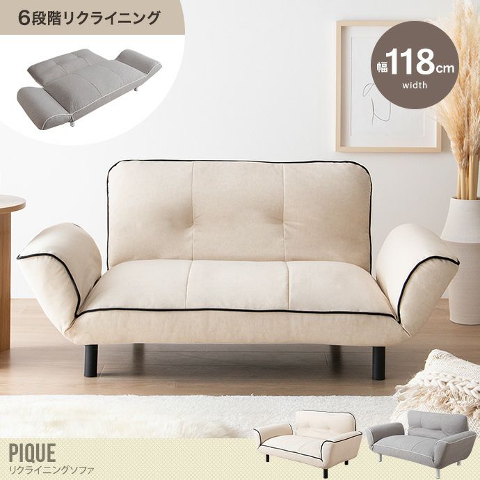 他の画像を見る 【送料無料】Pique ピケ 幅118 リクライニングソファ ソファー 二人掛けソファ 2人掛け ソファベッド ローソファ フロアソファ カウチソファー 6段階リクライニング ファブリック パイピング 肘付き 肘リクライニング ロータイプ ごろ寝 アイボリー 販売価格 ¥ 22,049 税込 送料込 カートに入れる お気に入りに登録する