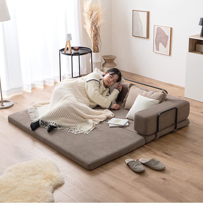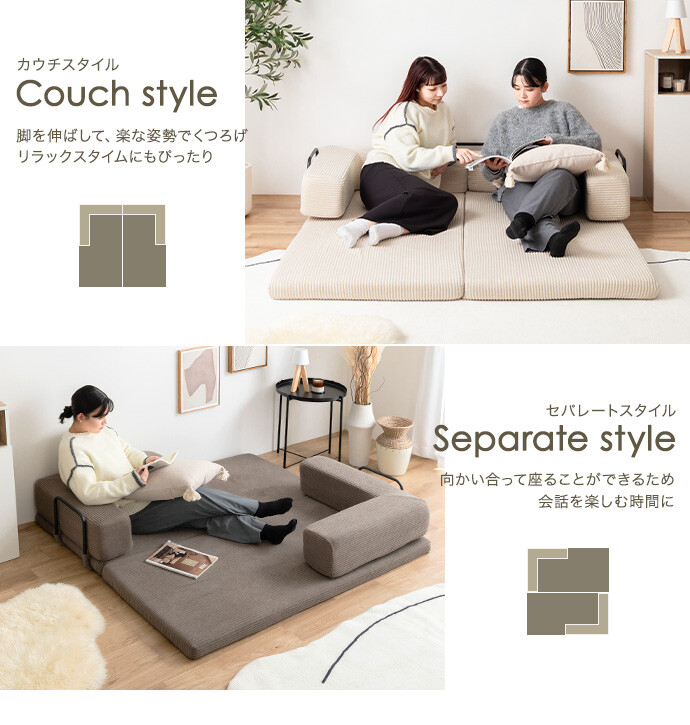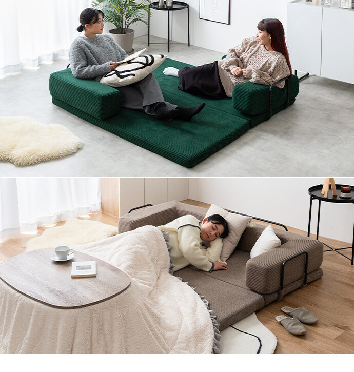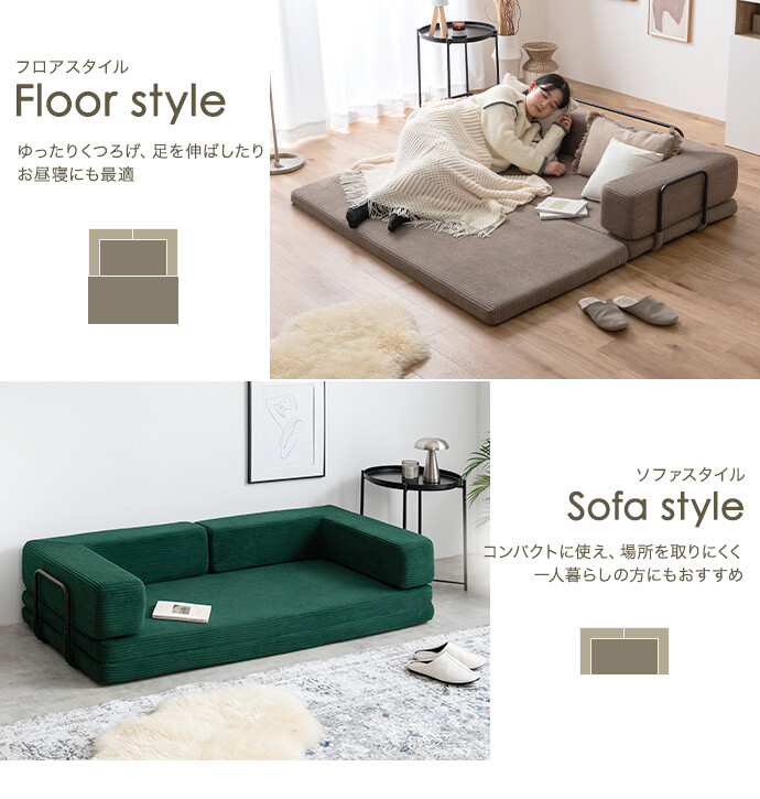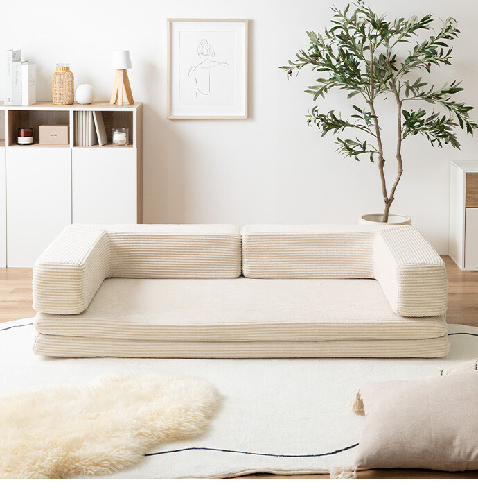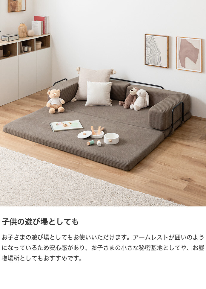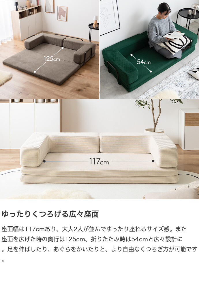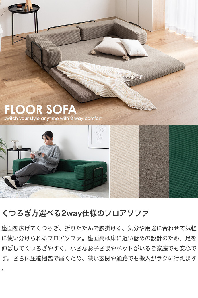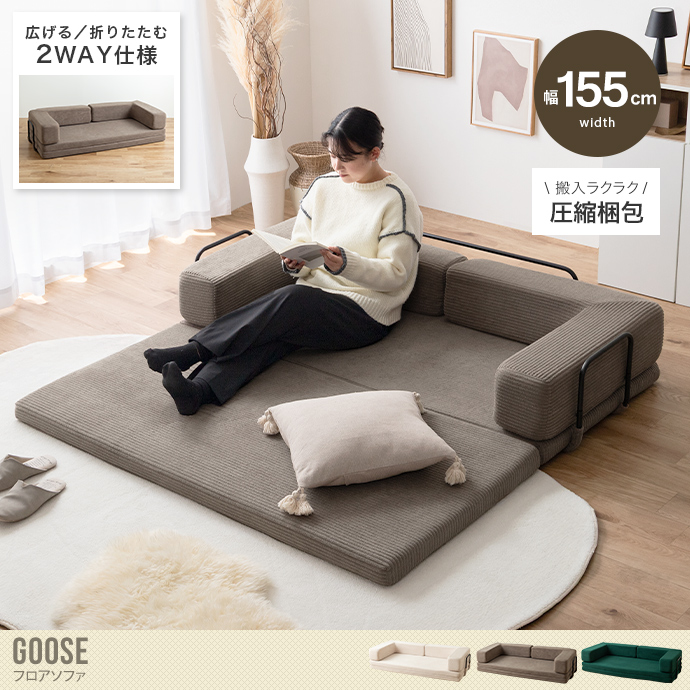 【送料無料】Goose グース 幅155 ソファベッド フロアソファ 2人掛けソファ フロアクッション こたつ プレイマット おしゃれ おすすめ 安い 圧縮 2way 折りたたみ コンパクト ファミリー 家族 子供 キッズ 一人暮らし コーデユロイ 搬入簡単 アイボリー
