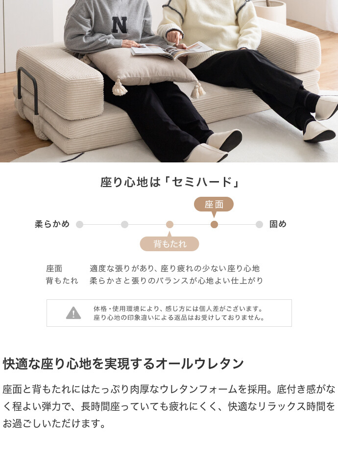 【耐荷重】ソファスタイル時:約160kg、フロアスタイル時:約100kg