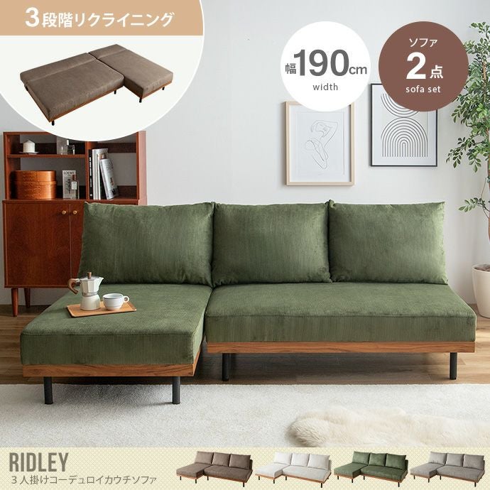 【送料無料】Ridley リドリー 幅190 ソファーベッド ソファ 3人掛け ソファベッド リクライニング 2点セット ソファーセット ベッド おしゃれ おすすめ 安い ローソファー コーデュロイ フロアソファ 脚付き アームレス ひじ掛けなし モカベージュ