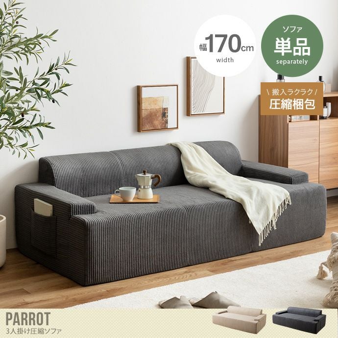 【送料無料】幅170 3人掛けソファ 圧縮ソファ ソファ 三人 3P おしゃれ おすすめ 安い 圧縮梱包 圧縮 コーデュロイ ゆったり 高密度 ローバック リビング ワンルーム 一人暮らし くすみカラー ベージュ