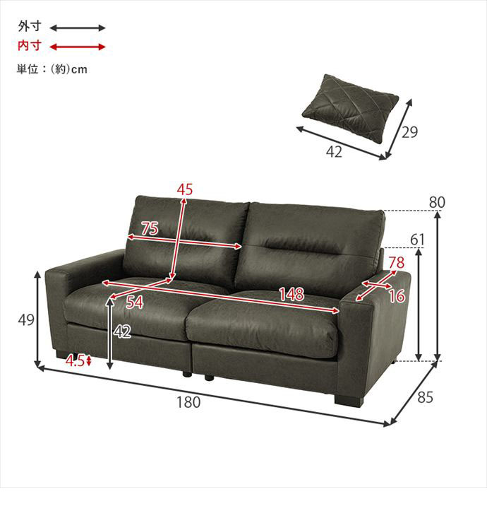 サイズ幅180cm×奥行85cm×高さ80cm(座面高:42cm)