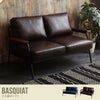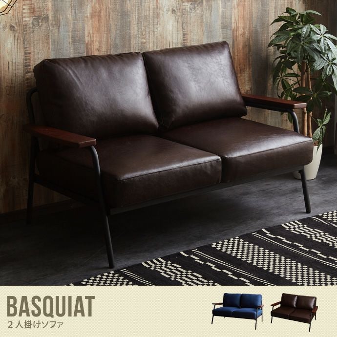 人気のブルックリンスタイルから北欧系のお部屋まで幅広く合わせていただけるアイアンフレーム×天然木製肘掛けの組み合わせがオシャレな『Basquiat』2人掛けソファ。PVCレザーを使用したダークブラウンと明るいデニム生地を使用したデニムブルーの2色で展開しています。