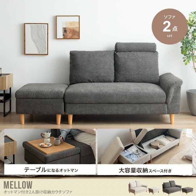 【送料無料】Mellow メロー 幅179 カウチソファ 収納付き ソファ ロー カウチ セット おしゃれ おすすめ 安い 2人掛け テーブル 枕 オットマン アームレスト ヘッドレスト 大容量 寝れる ごろ寝 一人暮らし リビング シンプル コンパクト ベージュ