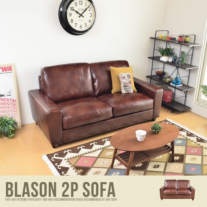 【送料無料】レトロソファ 2人掛け レザー 幅160cm ビンテージ ブラウン