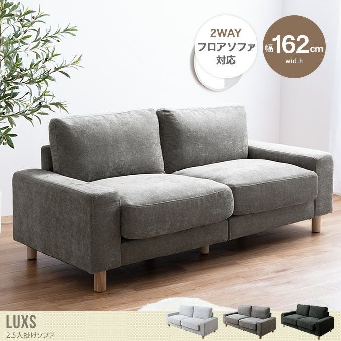 【送料無料】Luxs ルクス 幅162 ソファ フロアソファ ベッド 2.5人掛け 二人用 3人 2P 3P リビング 低い low ロー設計 肘置き ひじ掛け アームレスト 広々 ふかふか 脚付き 弾力 一人暮らし ワンルーム 寝れる 高級感 高見え ゆったり sofa ライトグレー