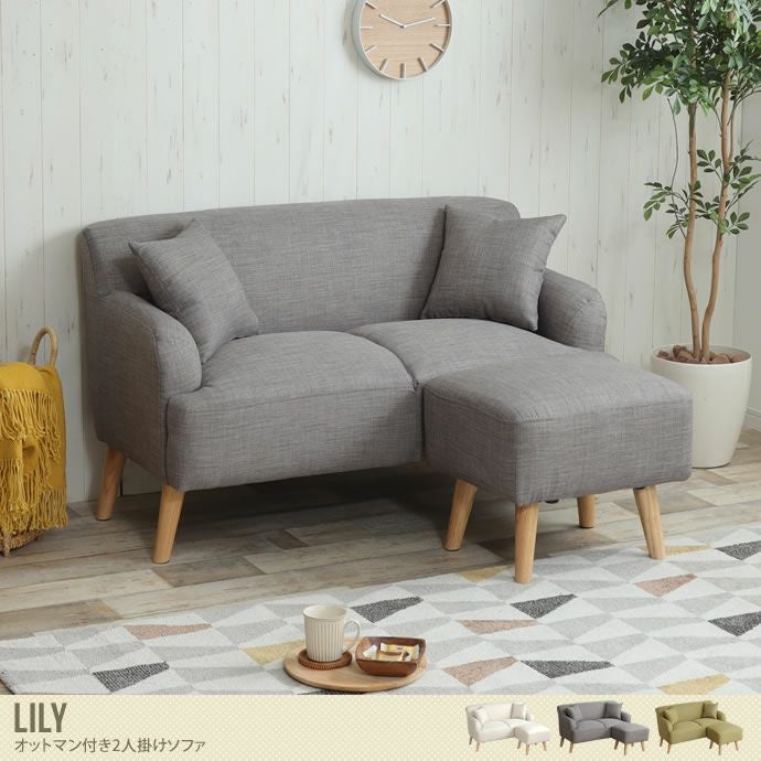 コロンと丸みを帯びたデザインで、ふかふかの座り心地のオットマン付き2人掛けソファ『Lily(リリー)』が登場。ワンルームや1人暮らしのお部屋にも置ける嬉しいコンパクトサイズで、足を伸ばしてくつろぐことができます。張地には肌触りの良いファブリック素材を使用。本体と同じ素材のクッションが2個付いているので、届いた日から快適にお使いいただけます。また、脚部は簡単に取り外しできるので、季節や気分に合わせてフロアソファとしてもお使いいただけます。