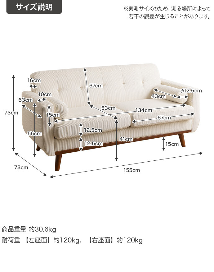 サイズ幅155cm×奥行73cm×高さ73cm(座面高:41cm)