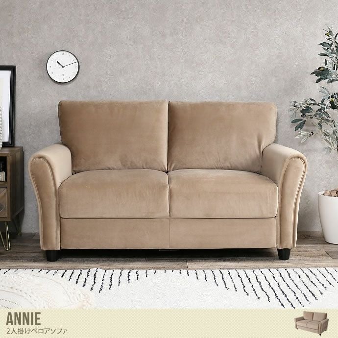 上品なデザインが目を惹く『Annie』2人掛けベロアソファ。落ち着いたベージュカラーのベロアを使用し、高級感漂う空間がうまれます。やわらかく気持ちの良い手触りが魅力的ですよ。ナチュラルからモダンまで、幅広いテイストの空間とマッチします。幅146cmと大人2人が座っても圧迫感なくお使いいただけますよ。ボリュームのある座面だから座り心地も良く、快適にお過ごしいただけます。