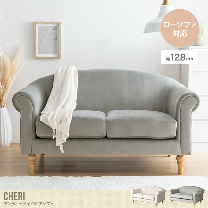 【送料無料】Cheri シェリ 幅128 ソファ 二人掛けソファ ベロアソファ ローソファ フロアソファ 韓国 インテリア 海外インテリア風 ろくろ脚 ベロア コンパクト 省スペース I字 ローバック 一人暮らし 2way ロクロ脚 ローソファー I字型 2人掛けソファ 2人掛け アイボリー