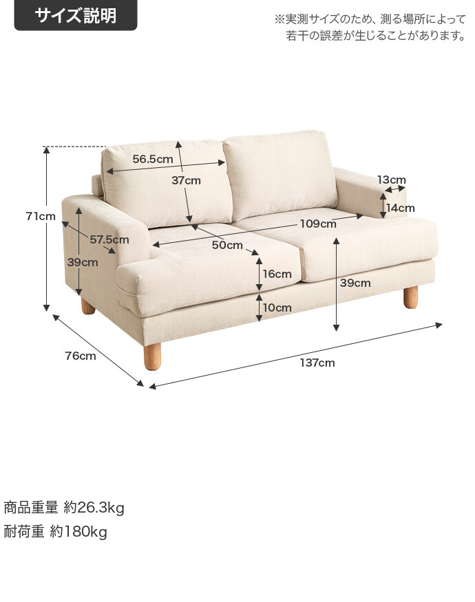 サイズ幅137cm×奥行76cm×高さ71cm(座面高:39cm)