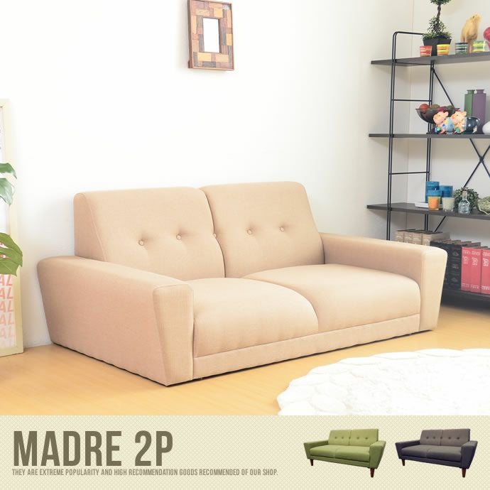 ボタン留めがオシャレな国産ソファ。注文をいただいてから、1台1台丁寧に生産する、オーダー商品になります。ゆったり座れる2人掛けソファです。