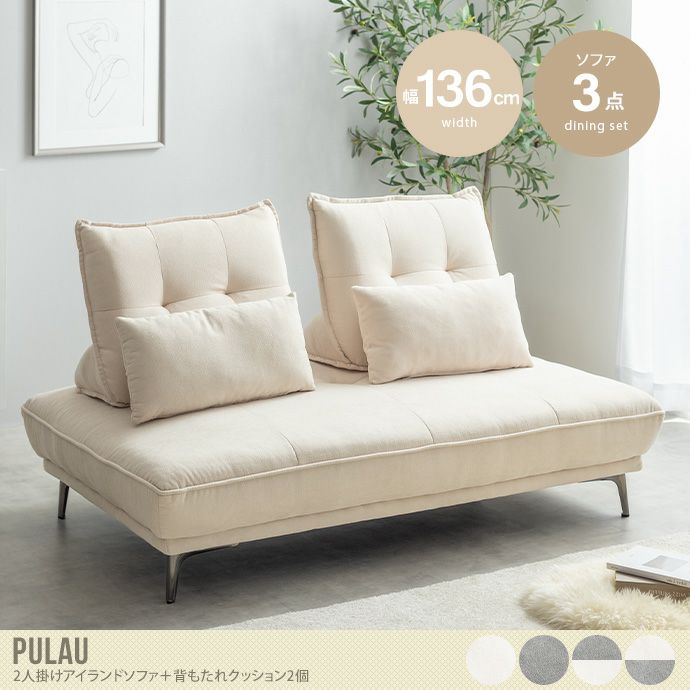 他の画像を見る 【送料無料】Pulau プロゥ 幅136 ソファ アイランドソファ 2人掛け ローソファ おしゃれ おすすめ 安い 3点セット 背もたれクッション 組立簡単 脚取り外し可能 コンパクト 2P リビング サロン 高級感 店舗 ごろ寝 一人暮らし 2人暮らし 同棲 本体:アイボリー×背:アイボリー 販売価格 ¥ 36,997 税込 在庫切れ 送料込 カートに入れる お気に入りに登録する