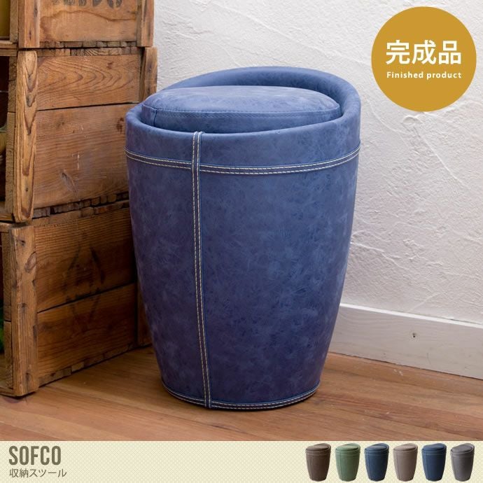 「座る」と「収納する」のどちらも兼ね備えたデザインのスツール“Sofco(ソフコ)”。丸いフォルムが印象的。座面を外すと中が収納スペースになっており、お部屋の片付けに大活躍します。ちょっとした休憩や長時間座る時もゆったりとくつろげるふかふかの座面と心地のいい肌触り。側面の素材がファブリックと合成皮革(PU)の2パターンがあり、色味はファブリックがブルー・グレー・ダークグレー。合成皮革(PU)はブルー・ブラウン・グリーンがあります。どの色もお部屋になじんでくれる落ち着いた色合いです。