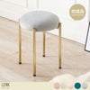 ころんとした座面にゴールドの脚がフェミニンな『Lenk(レンク)』スツール。座面には光沢感のある滑らかな触り心地のベロア風生地を使用し、ほどよい柔らかさで疲れにくい座り心地です。かさばらないコンパクトサイズでスタッキングもできるので収納にも困りません。