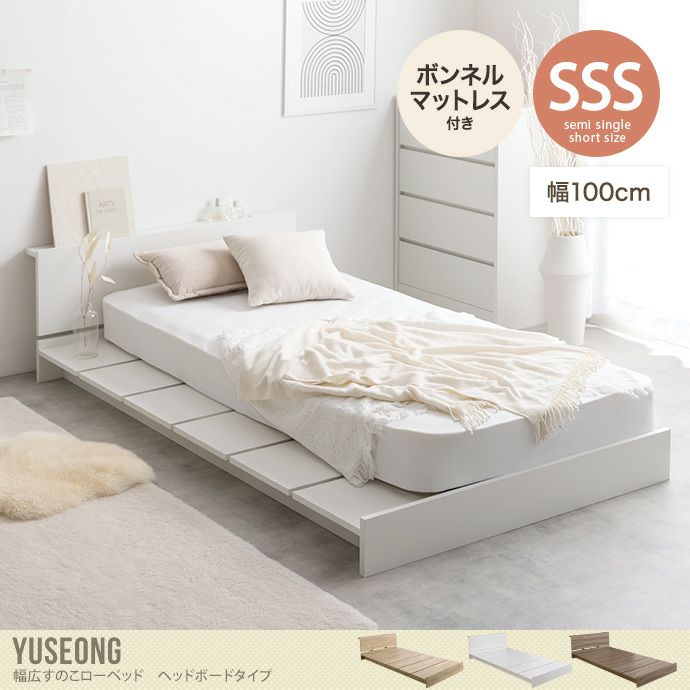 【送料無料】Yuseong ユソン 幅100 ベッド ボンネルコイル ロー ステージ すのこ 宮付き ヘッドボード 韓国 インテリア 人気 ボード 新生活 一人暮らし 子ども 子供部屋 キッズ