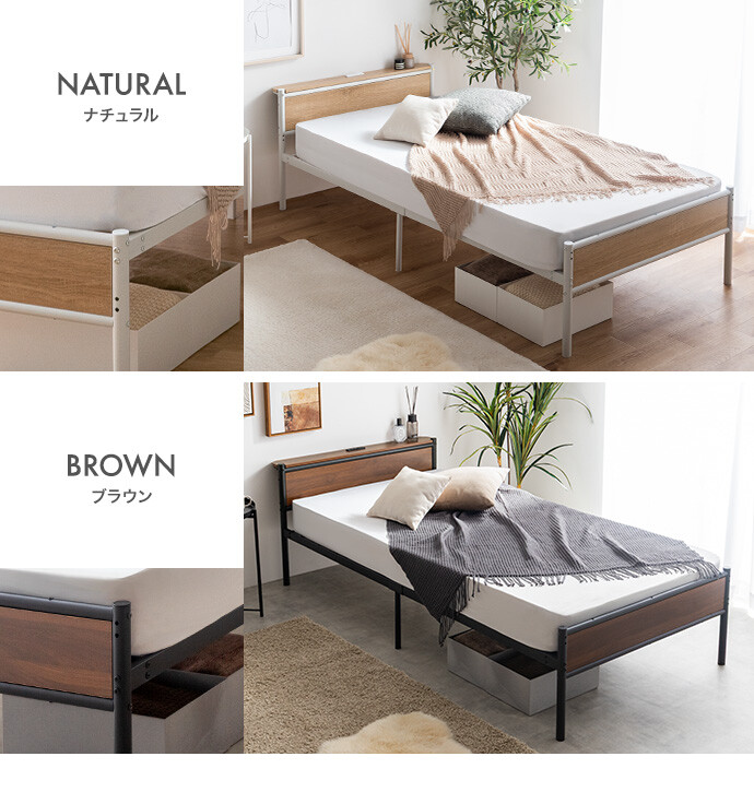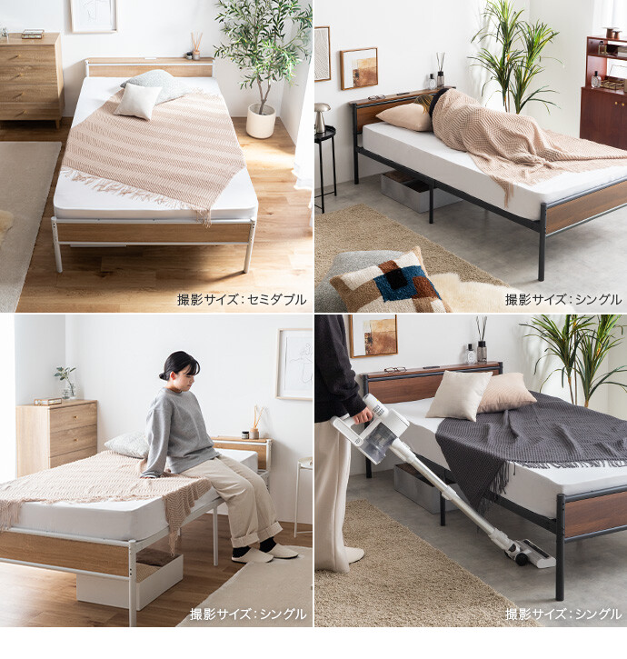 木目×アイアンのシンプルなデザインに、高さ調整・宮棚・2口コンセントを備え、毎日の使いやすさにこだわったパイプベッド。ベッド下を収納スペースとして活用できるため、お部屋を広く使え、ワンルームや一人暮らしでもすっきりとした空間作りが叶います。主張しすぎない佇まいでインテリアを選ばず、暮らしに自然と馴染む一台です。