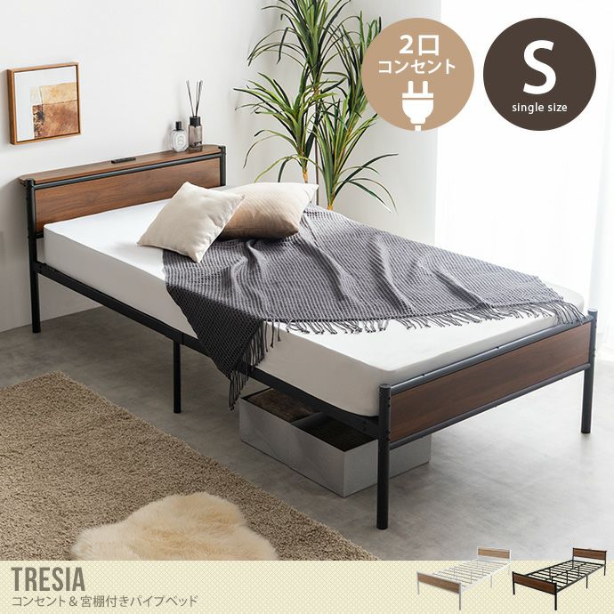 【送料無料】Tresia トレシア 幅97 シングル 【超高密度ポケットコイルマットレス付】 ベッド パイプ ローベッド おしゃれ おすすめ 安い フレーム マットレス付き ヘッドボード 宮棚 コンセント ベッド下収納 コンパクト かっこいい 湿気対策 一人暮らし ワンルーム 高さ調節