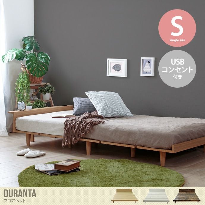 木の爽やかさが感じられる北欧デザインの『Duranta(デュランタ)』シリーズのフロアベッドです。ロータイプのベッドで、お部屋に与える圧迫感を軽減します。繊細な木目が爽やかで、お部屋に馴染みやすい色合いのデザインです。脚付きタイプのベッドで、収納ボックスやかごを使用して、ベッド下を収納スペースとしてご利用いただけます。左右に隔たりが無いため、複数台で繋げてご利用いただくことも可能です。