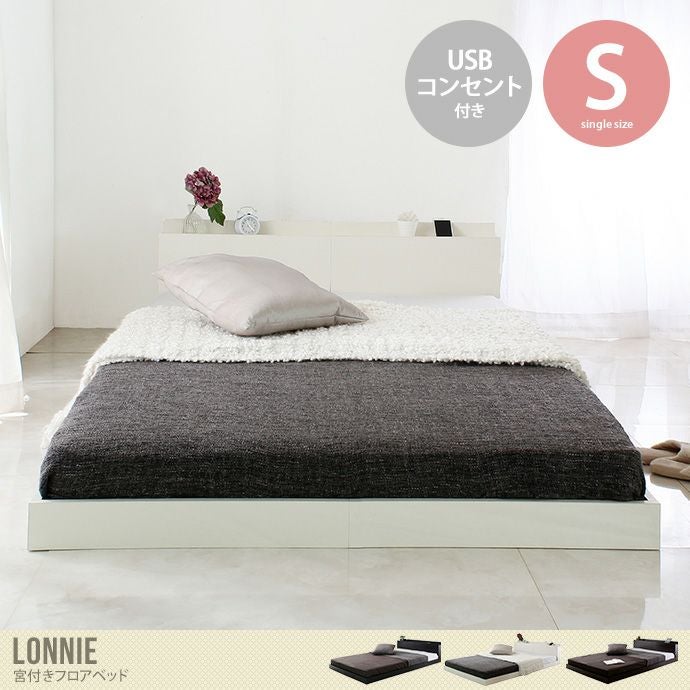 シンプルでスタイリッシュなデザインが魅力的な『Lonnie(ロニー)』シリーズのフロアベッド。ストレートなラインを活かしたフォルムが、洗練された印象を与えてくれます。また、高さを抑えたロータイプなので、お部屋に圧迫感を与えず、開放的な空間を演出してくれ、ワンルームなどの限られたスペースに置きたい方にもおすすめです。さらにヘッドボードには棚が付いており、目覚まし時計や携帯などの必需品が置けるので便利です。