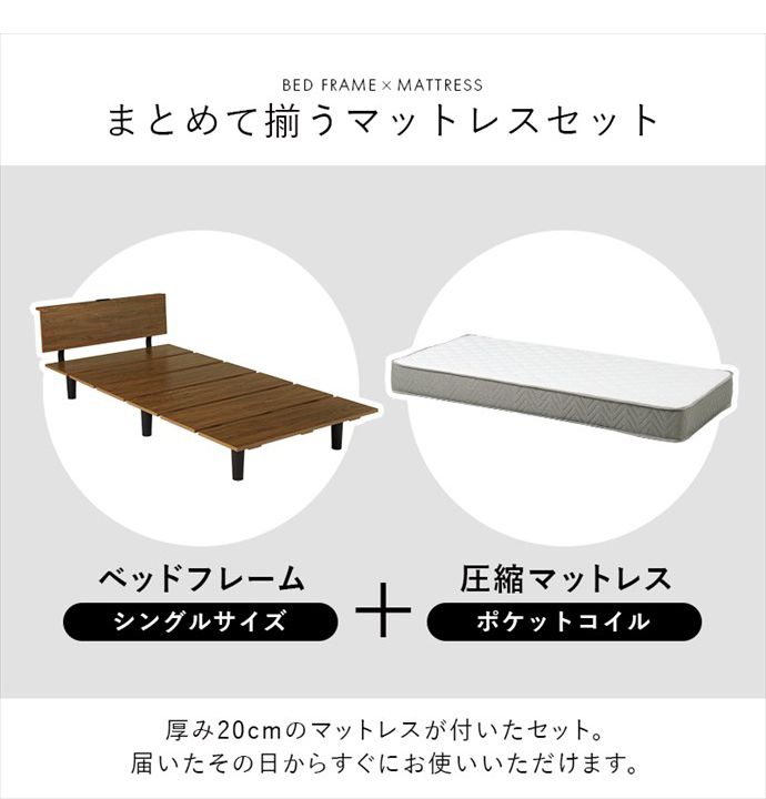 【送料無料】幅97 ベッド シングル ブラウン ロー すのこ おしゃれ おすすめ 安い フレーム ポケットコイルマットレス セット メッシュ ヘッドボード 2口コンセント 通気性 木目調 ウッド 脚付き 黒脚 ステージベッド 一人暮らし ワンルーム 家族