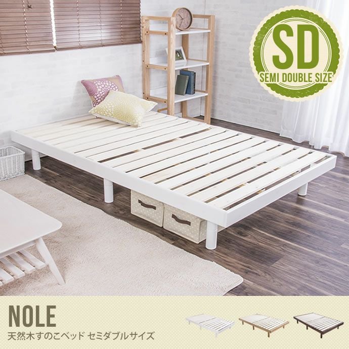 木のぬくもりを感じることのできるベッド『Nole すのこベッド セミダブル』。節が大きく、くっきりとした美しい木目がお部屋を印象的に演出。通気性・耐久性に優れたすのこ板を使用し、湿気やカビ対策としても優れています。また、ベッドの脚は継ぎ脚タイプで10cm・20cm・33cm簡単に高さを変更出来ます。ハイタイプにしてベッド下スペースを有効活用したり、ロータイプにしてお部屋を広く見せたり色々な使い方で活用出来ます♪