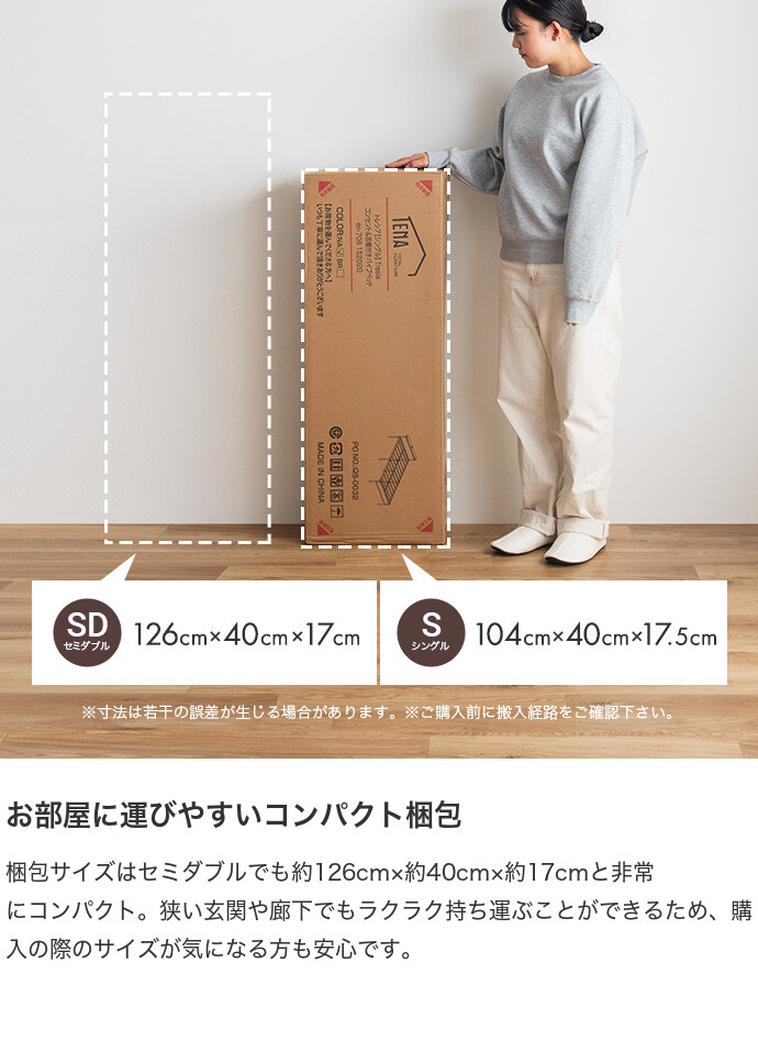 ※マットレスとフレーム枠のサイズについては、誤差が出る場合がございます。予めご了承下さいませ。