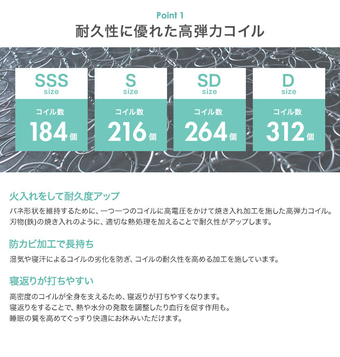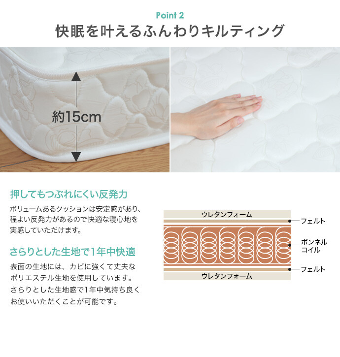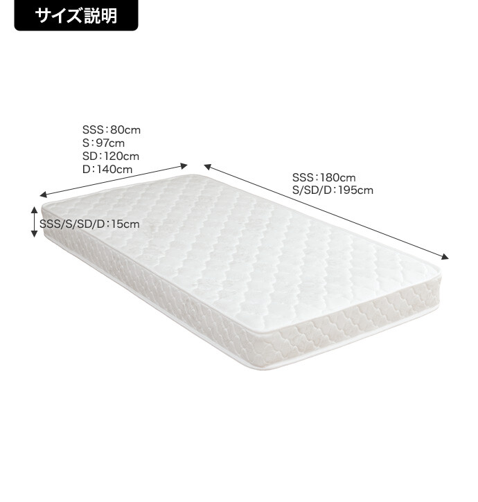 幅120cm×長さ195cm×高さ15cm(コイル数:264)
