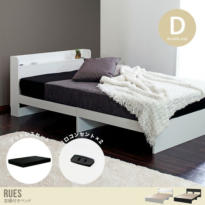 【送料無料】幅140cm ベッド ダブル ホワイト ベッド ダブル ホワイト 宮棚付きベッド ベッドフレーム フレーム 宮棚付き 宮付き コンセント付き 1口コンセント おしゃれ rues ダブル ホワイト サイズ 棚付きベッド 棚付き マットレス マットレス付き 床下収納